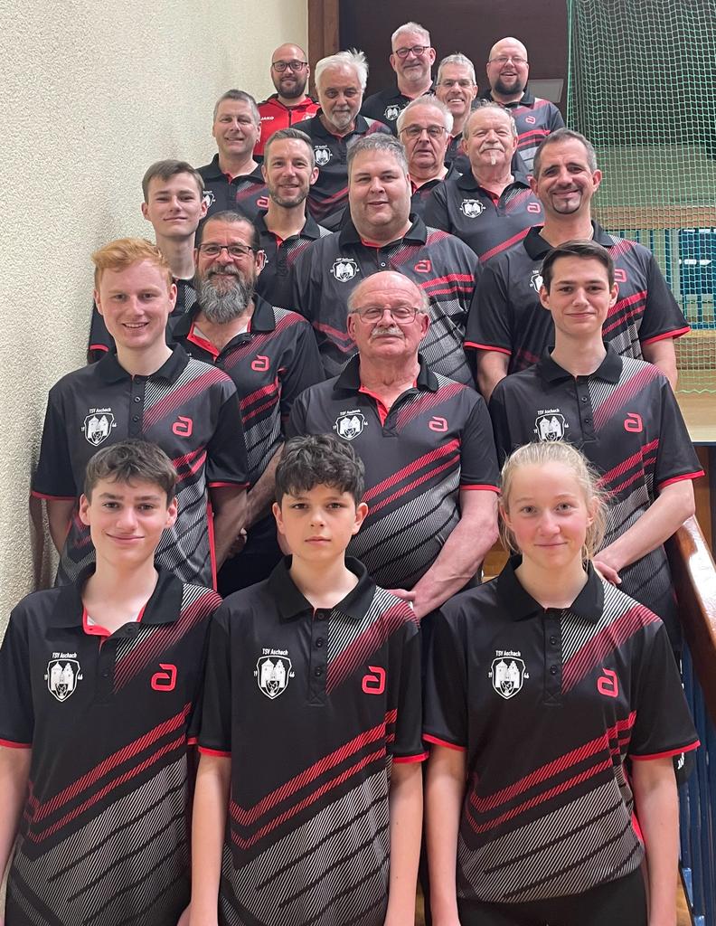 Foto 1 von unten links nach oben rechts: Emil Grom, Elias Voll, Leif Leiber, Lukas Zitter, Luca Walkenhorst, Felix Gerlach, Erik Schunjetz, Lennon Engelhard, Leonhard Borst, Leo Weidmann, Jamie Poppe, Nils Schmitt, Maximilian Falkenberg, Lukas Schneider, Paula Markard, Trainer/-innen Daniela Schneider, Ali Fuchs, Bernhard Rachor, Nicole Markard